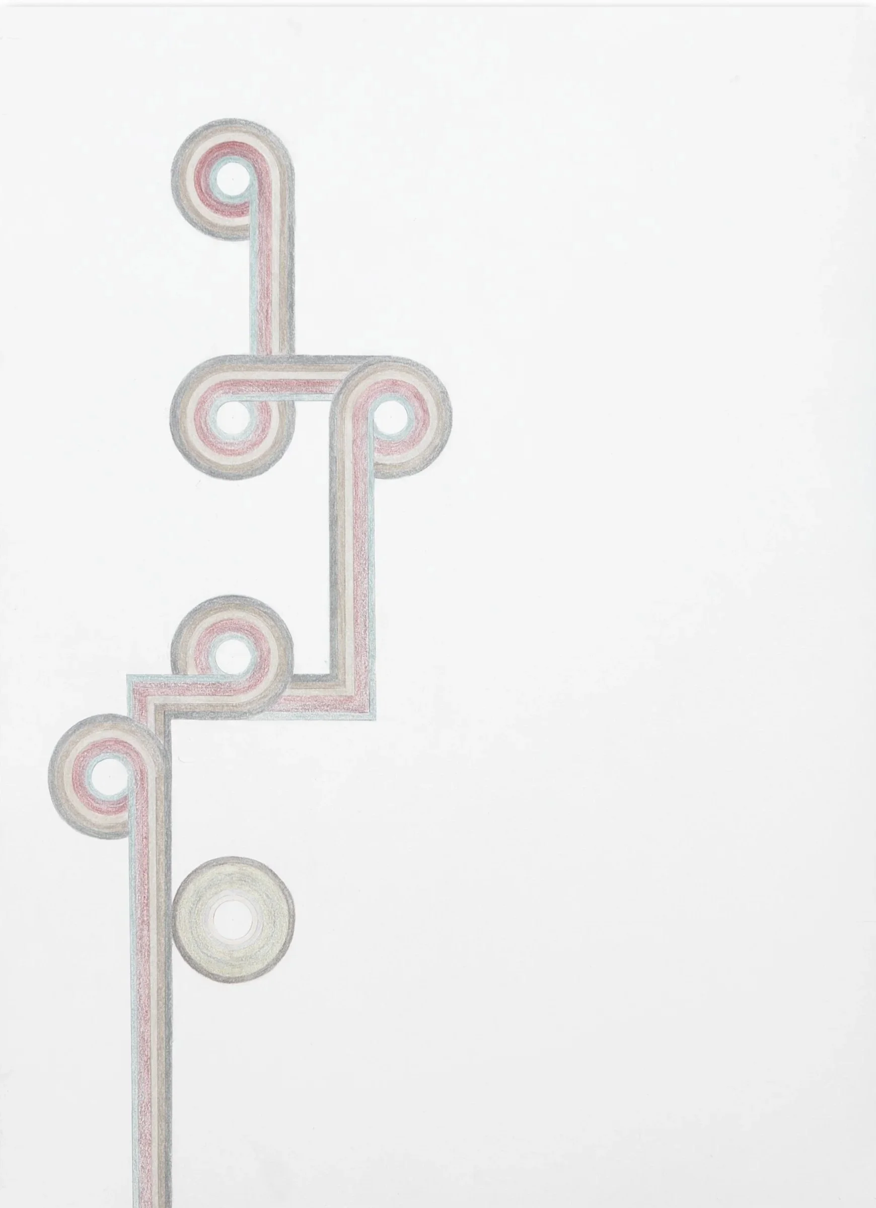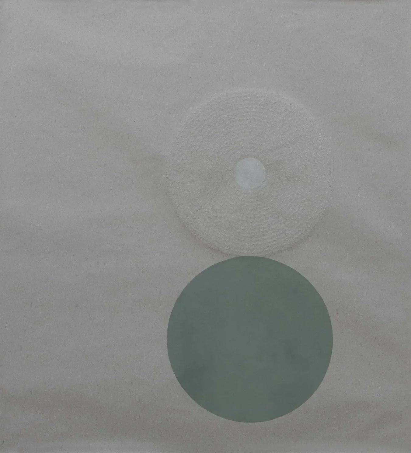 Circles in motion- Pastel & embossing on paper- Size: H120xW117 cm